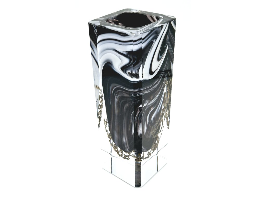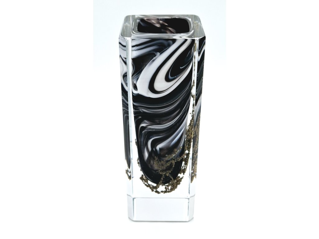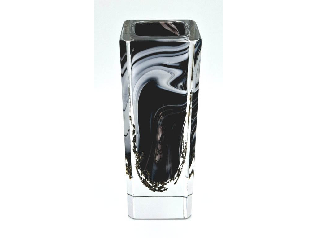 Váza je celá hranovaná, po bocích má broušené fazety (broušené rohy) .