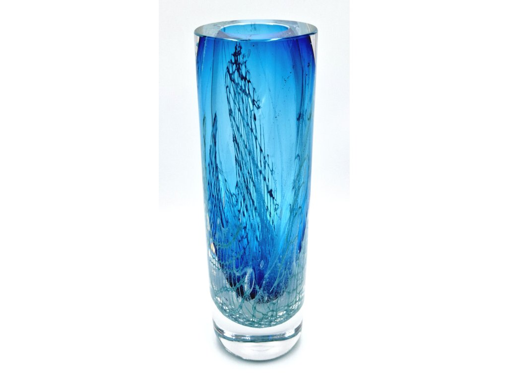 Vyrobena za pomoci sklářského nářadí, kdy sklář tvaruje výsledný tvar "volně z ruky"